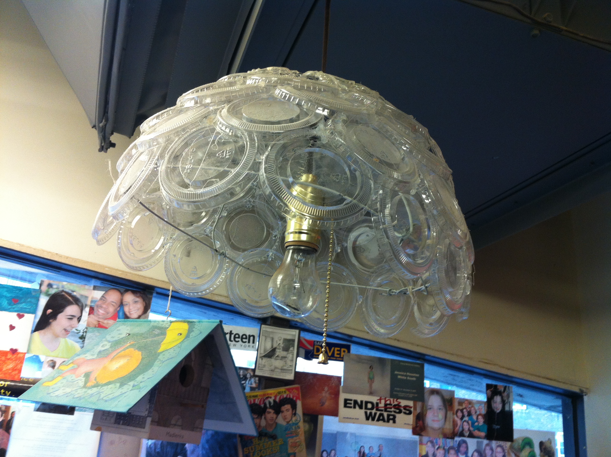 Lamp made from take out lids as part of Calhoun’s sustainable art and science program. This project was called Dumpster Dive Design.