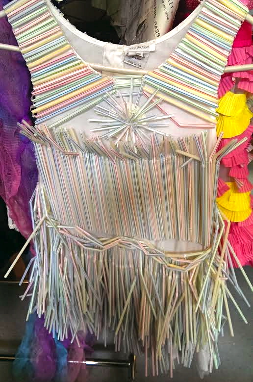 Dress made from straws as part of a fashion week lesson for upper school girls at the Marymount School in Manhattan.